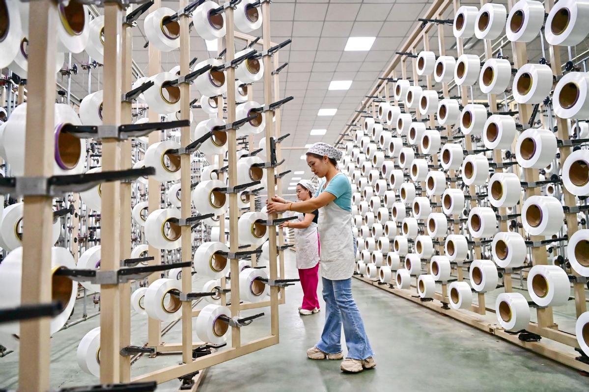 Employees work on the production line of a textile company in Ganzhou, Jiangxi province. [ZHU HAIPENG/FOR CHINA DAILY]